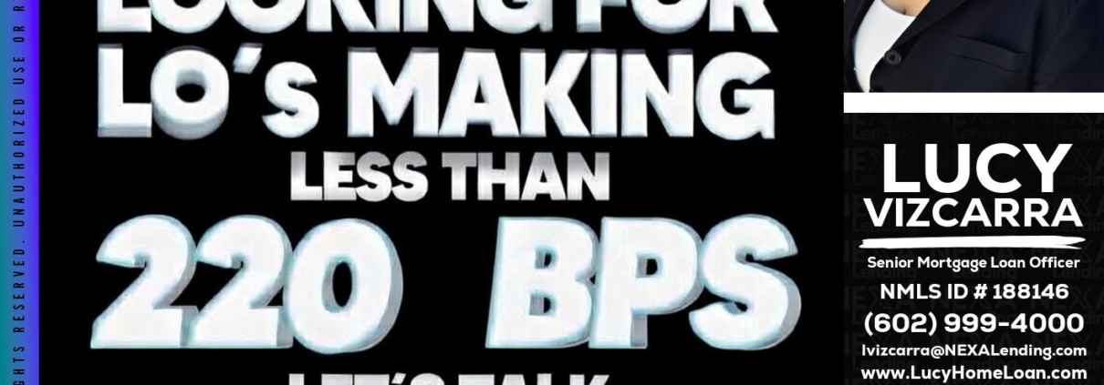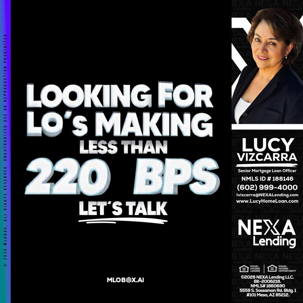 LOOKING FOR - Lucy Vizcarra -Mortgage Loan OfficerHi, my name is Lucy Vizcarra. I’m a Loan Officer with NEXA Lending LLC., offering personalized mortgage solutions, fast customized quotes, great rates and service with integrity.