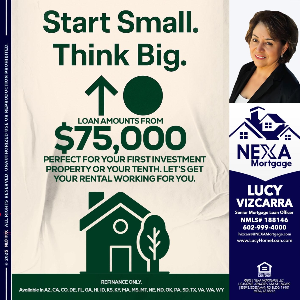 Hi, my name is Lucy Vizcarra. I’m a Loan Officer with NEXA Mortgage LLC., offering personalized mortgage solutions, fast customized quotes, great rates and service with integrity.